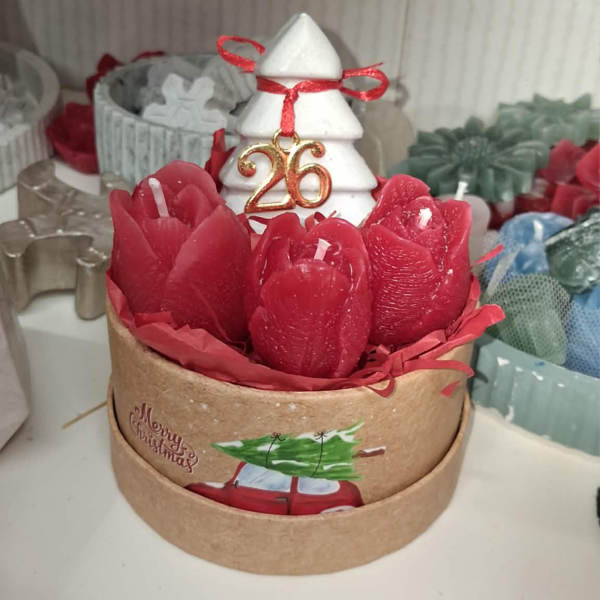 Christmas ανθοδέσμη με κεριά (με ανακυκλώμενο υλικό)