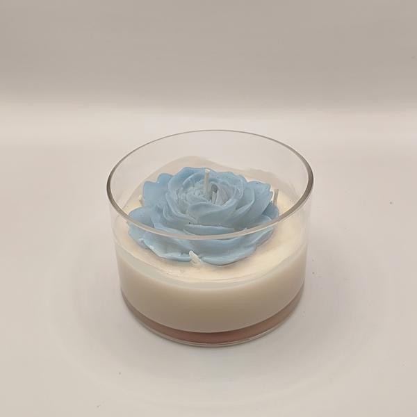 Γυάλινο δοχείο με κερι σογιας και τριανταφυλλο αρωματισμενο με αρωμα city of lights